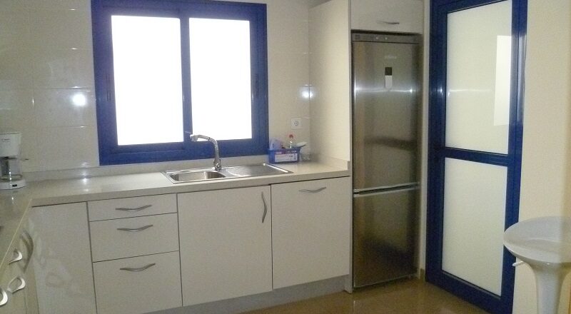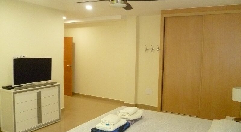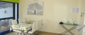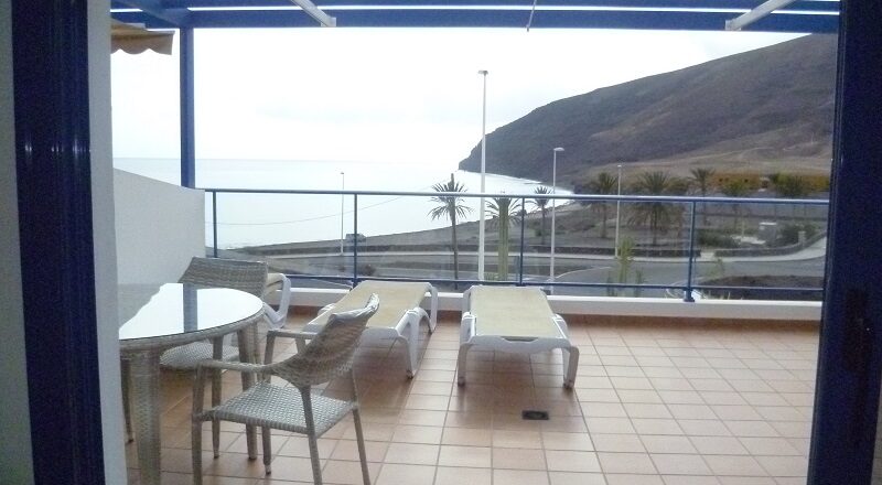 Excellent 3 bedroom apartment in the lovely town of Gran Tarajal in the south of Fuerteventura. The property is located on the second floort and to be sold as it sits now, with furniture, tv’s and all you need included, so it is and ready to move in. It comes with a separate kitchen connected to a laundry room, a full family bathroom with walk-in shower and separate guest toilet, the huge master bedrooms has an en-suite bathroom and all bedrooms come with build-in wardrobes. The good sized lounge/dining area opens with big sliding doors to a nice 24 m2 south facing terrace with an installed manual awning, offering amazing views over the Atlantic with beautiful sunsets on the horizon. 2 private 6m2 patios, one at the kitchen and 1 in the back of the property can be used for laundry drying. There is a sheltered private parking space on the first level of +/-15 m2 and an extra storage room located on the parking space area with the size of almost 7 m2, good for storage of bicycles or personal stuff . The well maintained community offers a huge 25 x 8 meter saltwater pool with sunbeds and parasols provided by the community, a round children’s pool and fully equipped gym area with changing rooms and shower possibility at pool area after using these facilities. Where 3 elevators connect all the floors of the complex, this property can be easily reached by wheelchair. The complex has a 24/7 operational CCTV system with full maintenance service 24/7. The village of Gran Tarajal is only 10 minutes walk through the nice harbour and thefrom the 18-Hole Golf Course of the Las Playitas Hotel just takes a 5 minute drive. It’s a perfect place to stay for your holidays or permanent residence living. Supermarkets, local shops, bars and restaurants are all within a walking distance and the scenery of the beautiful harbour invites for a nice evening walk. Available and fully furnished ready to change ownership. These apartments don’t come up often, so take your change now !!! More pictures follow soon !!!